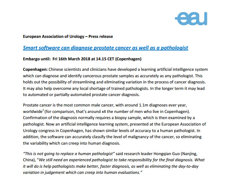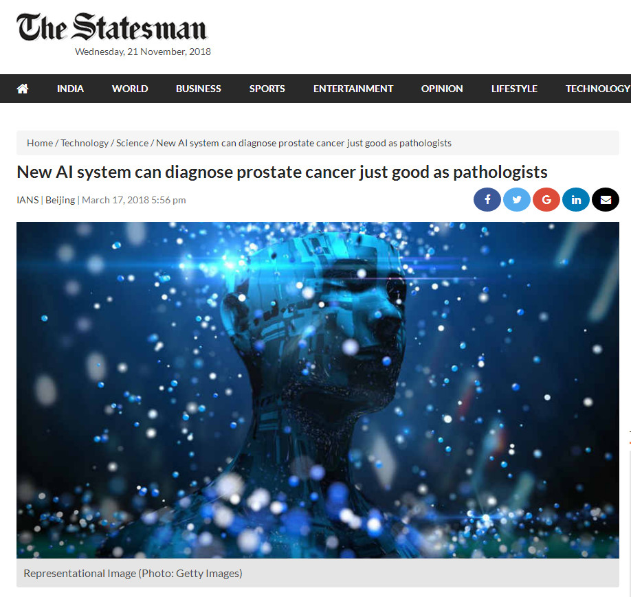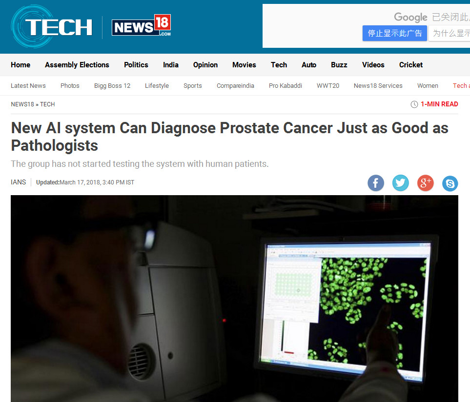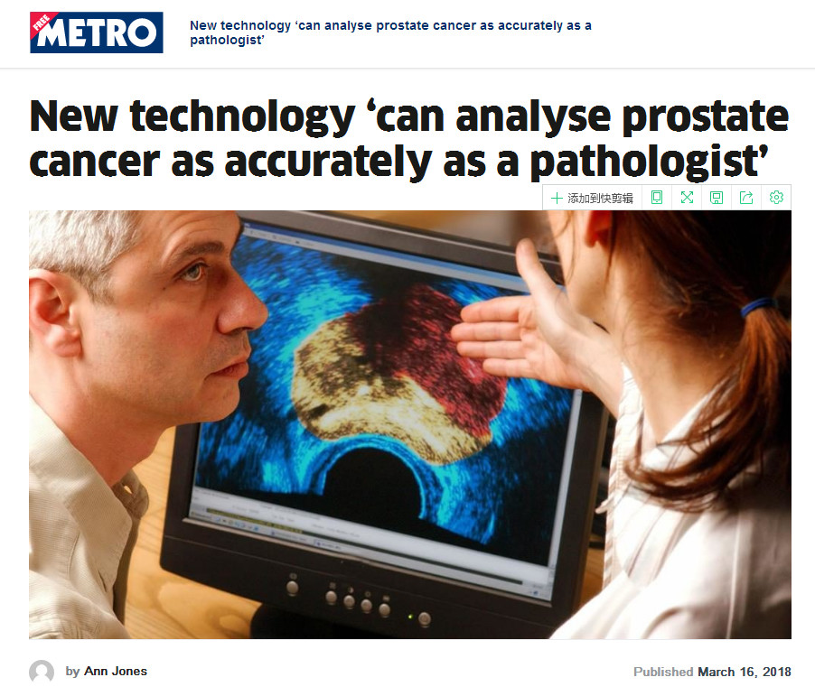 在人工智能逐漸融入人臉識(shí)別、語(yǔ)音識(shí)別、語(yǔ)言翻譯等領(lǐng)域研究的同時(shí),醫(yī)學(xué)AI應(yīng)用和研究也在如火如荼的開(kāi)展。對(duì)于前列腺癌等疾病而言,提高早期檢出率,提前預(yù)測(cè)癌癥的發(fā)生,對(duì)于減輕病人的痛苦,甚至是挽救病人的生命,都有著重要意義,這也是此項(xiàng)研究得到來(lái)自英國(guó)、美國(guó)、印度等多國(guó)媒體廣泛報(bào)道的重要原因之一。