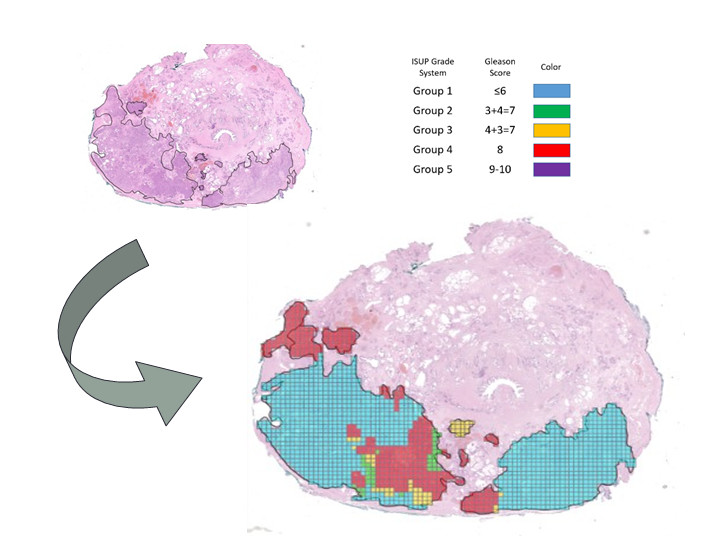 2.對(duì)切片進(jìn)行分類劃分和標(biāo)注,主要按照格里森指數(shù)(Gleason),按照有無(wú)患癌以及癌癥嚴(yán)重程度,將腫瘤區(qū)域劃分為5個(gè)等級(jí),用于預(yù)測(cè)前列腺癌的威脅以及它在病人體內(nèi)的行為方式。一般分?jǐn)?shù)越高,代表病灶區(qū)域越嚴(yán)重: