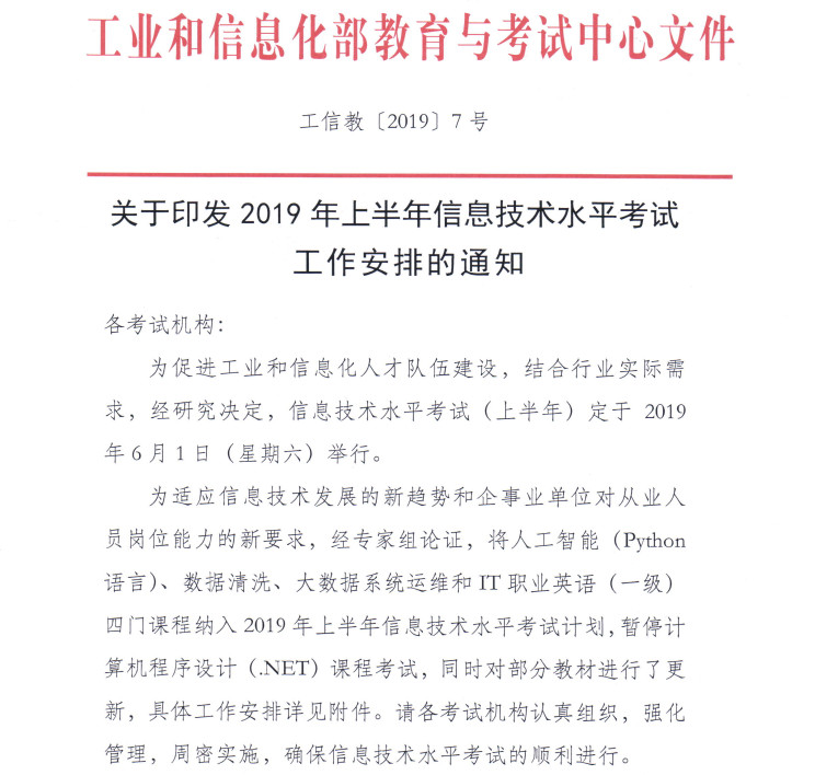 近日,工業(yè)和信息化部教育與考試中心印發(fā)了“2019年上半年信息技術(shù)水平考試工作安排的通知”,公布了2019年上半年信息技術(shù)水平考試科目及考試時(shí)間、工作日程安排以及教材目錄等。其中,由劉鵬教授主編、清華大學(xué)出版社出版的“大數(shù)據(jù)應(yīng)用人才培養(yǎng)系列教材”中的《Python語(yǔ)言》、《數(shù)據(jù)清洗》、《大數(shù)據(jù)系統(tǒng)運(yùn)維》三冊(cè)圖書同時(shí)入選“2019年上半年信息技術(shù)水平考試教材目錄”。