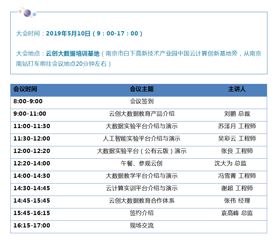 與此同時,云創(chuàng)大數(shù)據(jù)合作辦學大會將進行實驗實訓平臺5連發(fā),參會嘉賓將共同成為見證者,敬請期待: