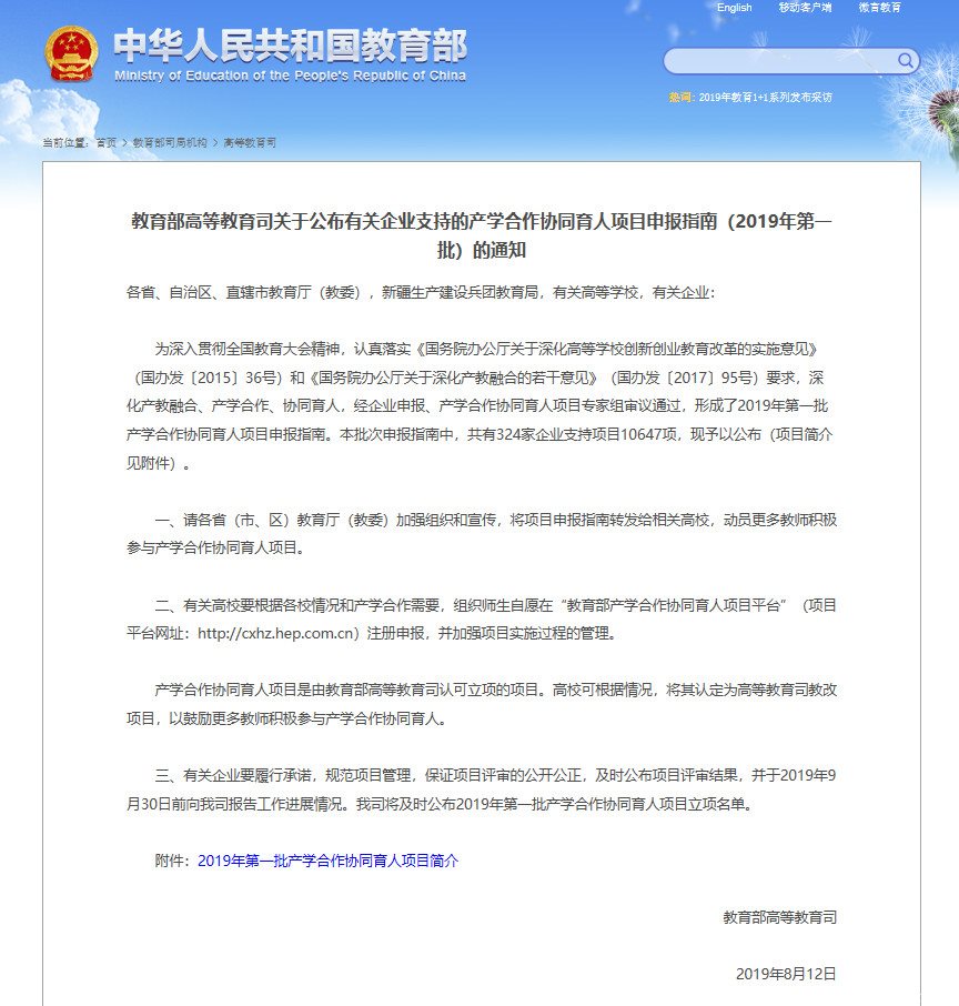 產(chǎn)學(xué)合作,才能更好助力高校轉(zhuǎn)型,“產(chǎn)學(xué)合作協(xié)同育人” 項目由教育部高等教育司面向企業(yè)征集,由企業(yè)提供經(jīng)費支持,更多高校參與項目合作,以產(chǎn)業(yè)和技術(shù)發(fā)展的新需求推動高校人才培養(yǎng)改革,促進高校人才培養(yǎng)與企業(yè)發(fā)展的合作共贏。