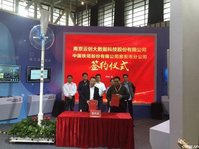 10月11日上午,2019年國際生態(tài)環(huán)境新技術(shù)大會中國鐵塔展區(qū),南京云創(chuàng)大數(shù)據(jù)科技股份有限公司與中國鐵塔股份有限公司淮安市分公司正式簽訂戰(zhàn)略合作協(xié)議。中國鐵塔淮安市分公司副總經(jīng)理周愛成及部分領(lǐng)導(dǎo),云創(chuàng)大數(shù)據(jù)沈大為總監(jiān)、環(huán)境事業(yè)部總經(jīng)理戴鵬、市場總監(jiān)謝久軍共同出席了簽約儀式。