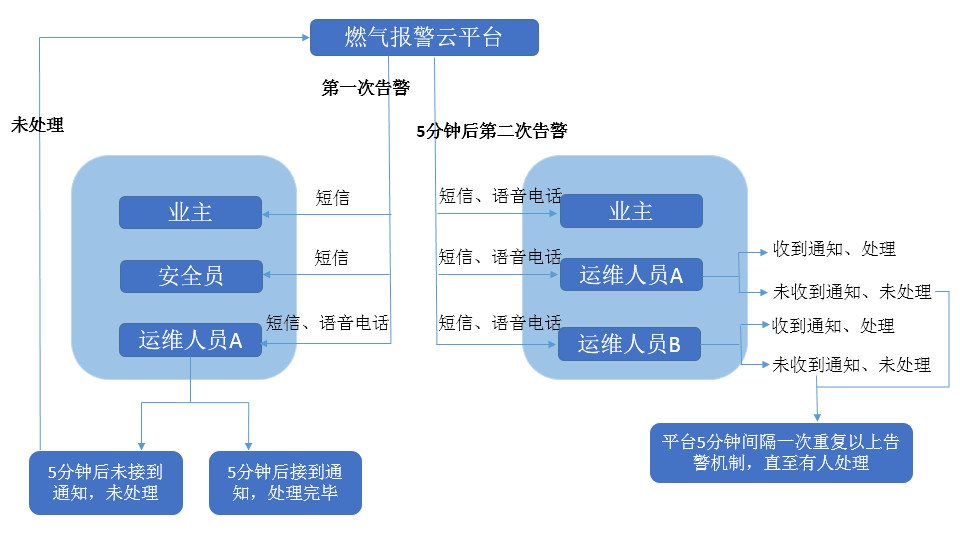 一般來說,按照報警流程,如果燃?xì)獍l(fā)生異常時,燃?xì)鈭缶破脚_會及時通知業(yè)主、街道安全員以及云創(chuàng)平臺運維人員。運維人員在收到短信通知后會及時打開手機(jī)APP,查看報警日志,并對異常事件進(jìn)行持續(xù)跟蹤。如果聯(lián)系不到業(yè)主,運維人員會及時前往現(xiàn)場,進(jìn)行現(xiàn)場的檢測和排查。