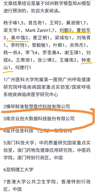 自新冠肺炎疫情爆發(fā)以來,鐘南山院士創(chuàng)立的廣州呼吸健康研究院牽頭,聯(lián)合云創(chuàng)大數(shù)據(jù)等多家單位對新冠肺炎疫情進行了全面研究。清華大學博士、中國大數(shù)據(jù)應(yīng)用聯(lián)盟人工智能專家委員會主任、南京大數(shù)據(jù)研究院院長、云創(chuàng)大數(shù)據(jù)總裁劉鵬教授率云創(chuàng)大數(shù)據(jù)技術(shù)團隊——曹騮、沈大為、高中強、曹旭東、羅藝峰、時晨皓、鄭圣杰,參與了新型冠狀病毒人工智能預(yù)測研發(fā)工作。