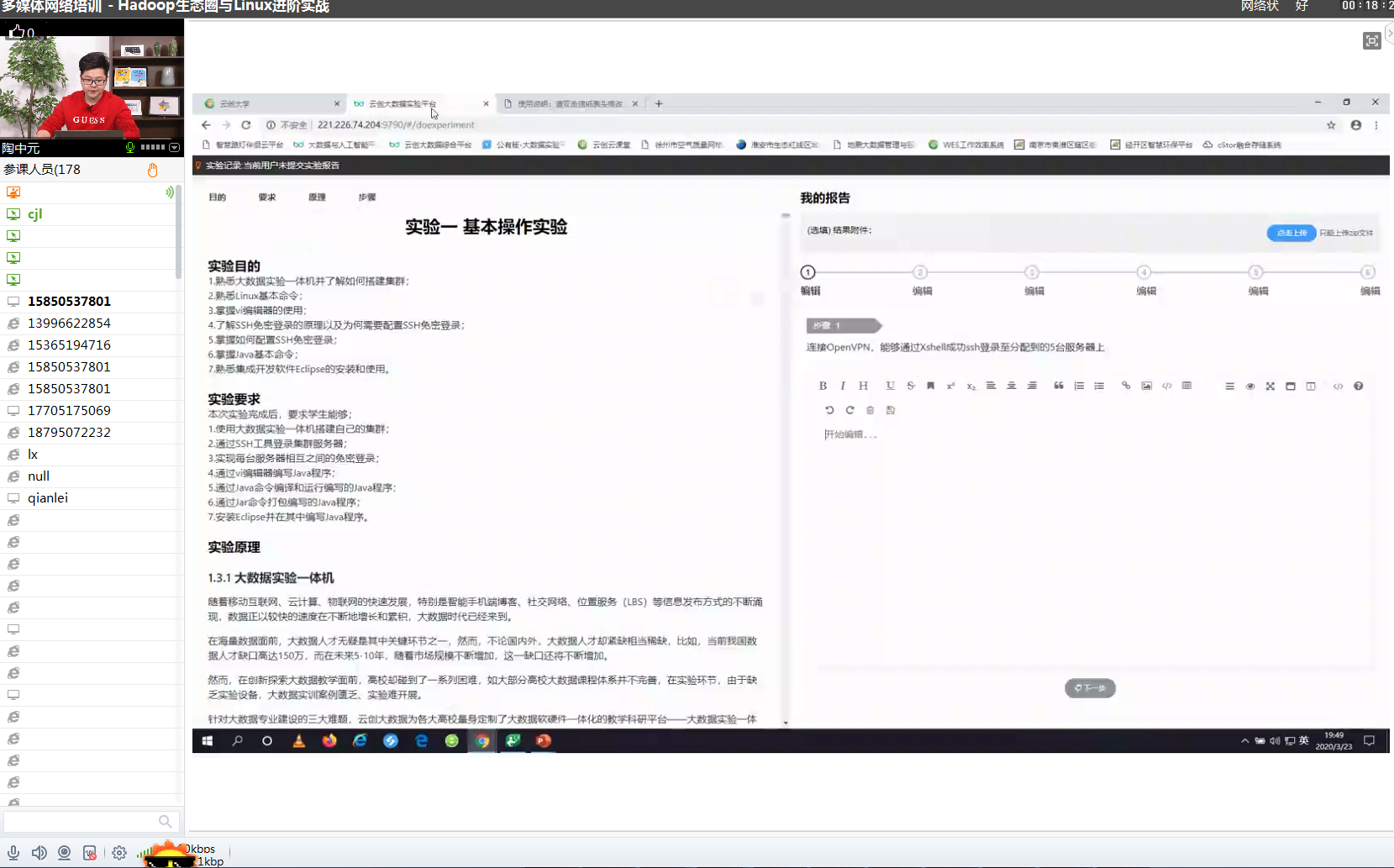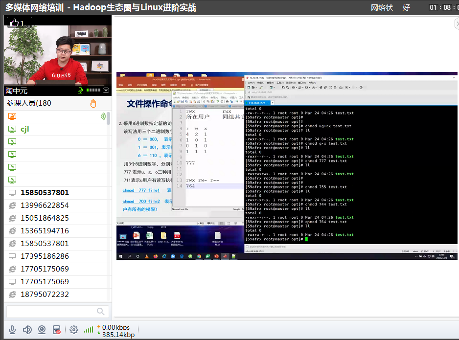 在當(dāng)天的課程中,云創(chuàng)大數(shù)據(jù)優(yōu)秀講師(工程師)陶中元帶來了第一課“Hadoop生態(tài)圈與Linux進(jìn)階實(shí)戰(zhàn)”的課程講解。陶中元講師從基礎(chǔ)的理論知識講起,再到實(shí)戰(zhàn)操作,一步步帶大家完成了學(xué)習(xí)和實(shí)驗(yàn)。大家對陶中元講師詳盡細(xì)致的知識講解和認(rèn)真負(fù)責(zé)的授課態(tài)度給予不俗評價。同時,云創(chuàng)開發(fā)工程師組成的助教團(tuán)隊(duì)也守候在彈幕區(qū),替大家解決遇到的各種疑難問題。
