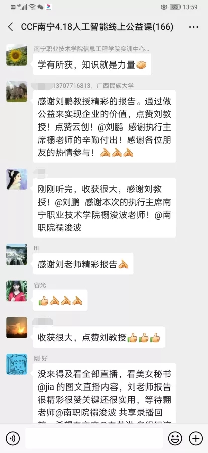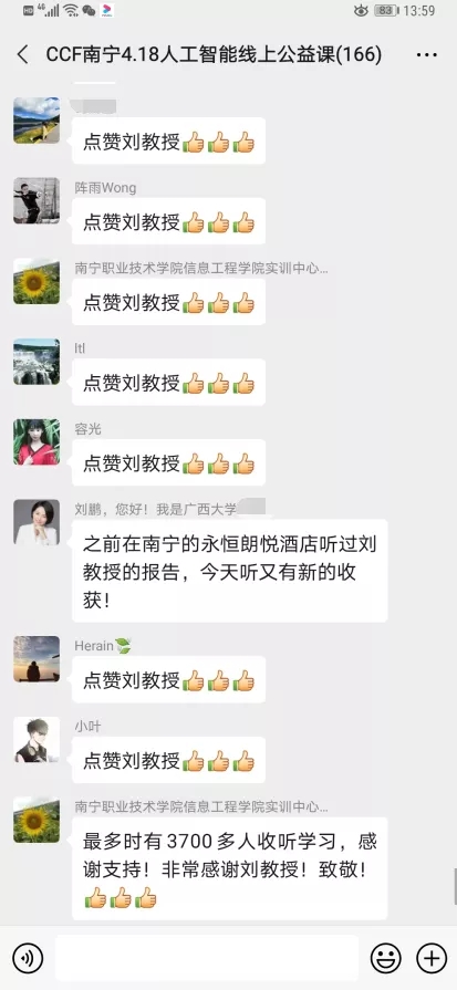 4月18日上午,CCF(中國計算機(jī)學(xué)會)南寧會員活動中心舉辦了線上直播公益課,劉鵬教授受邀作主題報告。3700多位南寧會員以及對大數(shù)據(jù)、人工智能技術(shù)感興趣的社會人士、在校大學(xué)生、青少年等觀看了本次直播。