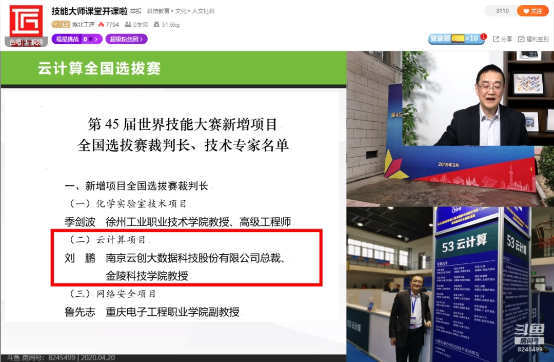 為落實湖北省人社廳部署,在疫情防控下扎實做好第46屆世界技能大賽各項備賽工作,保證大賽訓(xùn)練“不斷檔”,按照“停集不停訓(xùn)”要求,4月20日上午,湖北工匠職業(yè)技能提升平臺特邀請劉鵬教授在線解讀世界技能大賽云計算項目比賽與技能人才培養(yǎng),助力第46屆世界技能大賽湖北省選拔賽備賽選手居家訓(xùn)練!